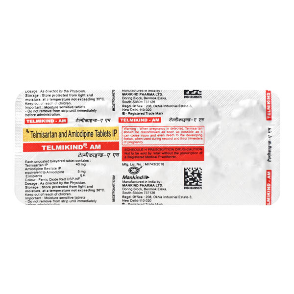 Telmikind-AM Tablet contains two medicines, both of which help to control high blood pressure. It lowers the blood pressure by relaxing the blood vessels and making it easier for your heart to pump blood around your body. This will reduce your risk of having a heart attack or a stroke.